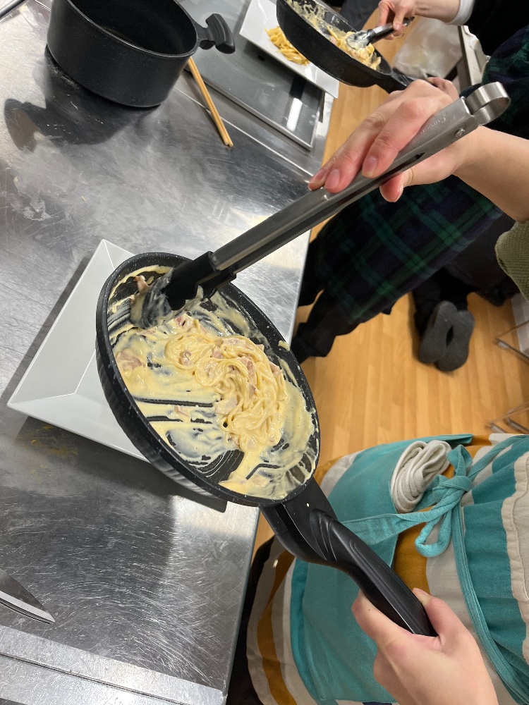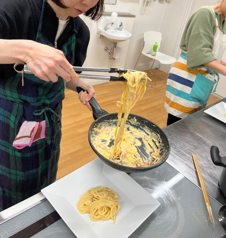 カルボナーラは前回カルチャー教室でもやった失敗知らずのカルボナーラ!