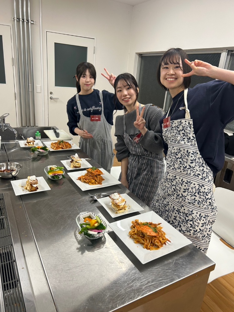 レッスン後は、出来上がった料理を囲んでランチ会。参加者同士で楽しいひとときを過ごしましょう。