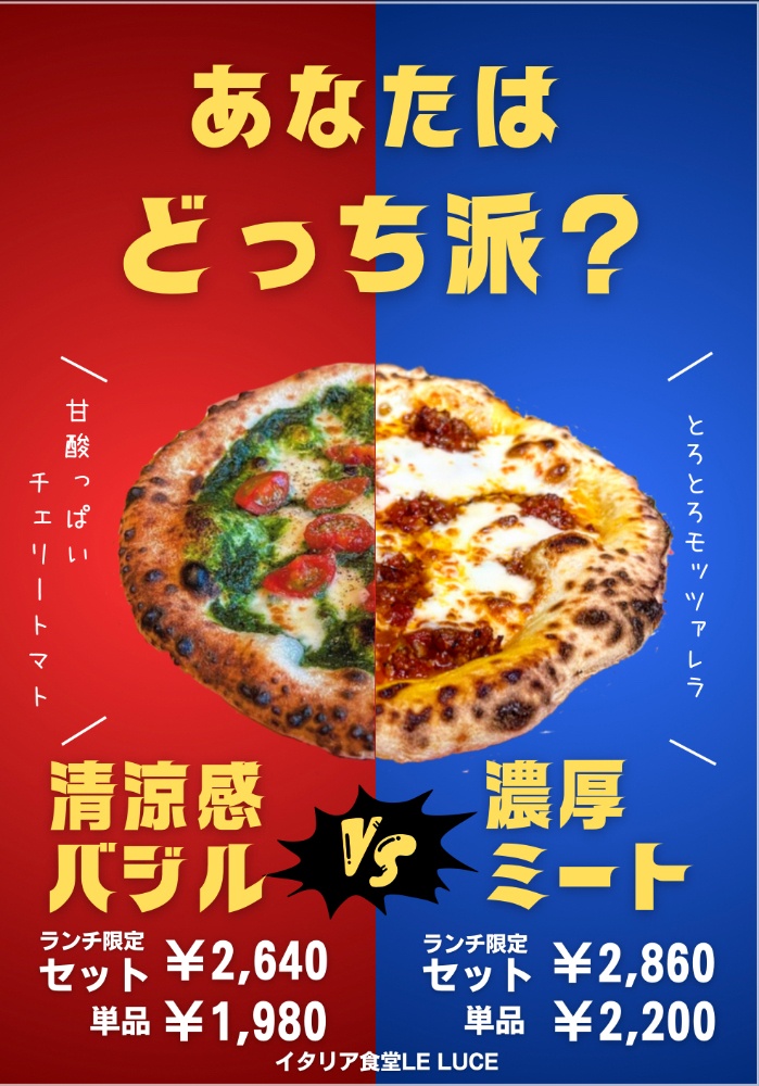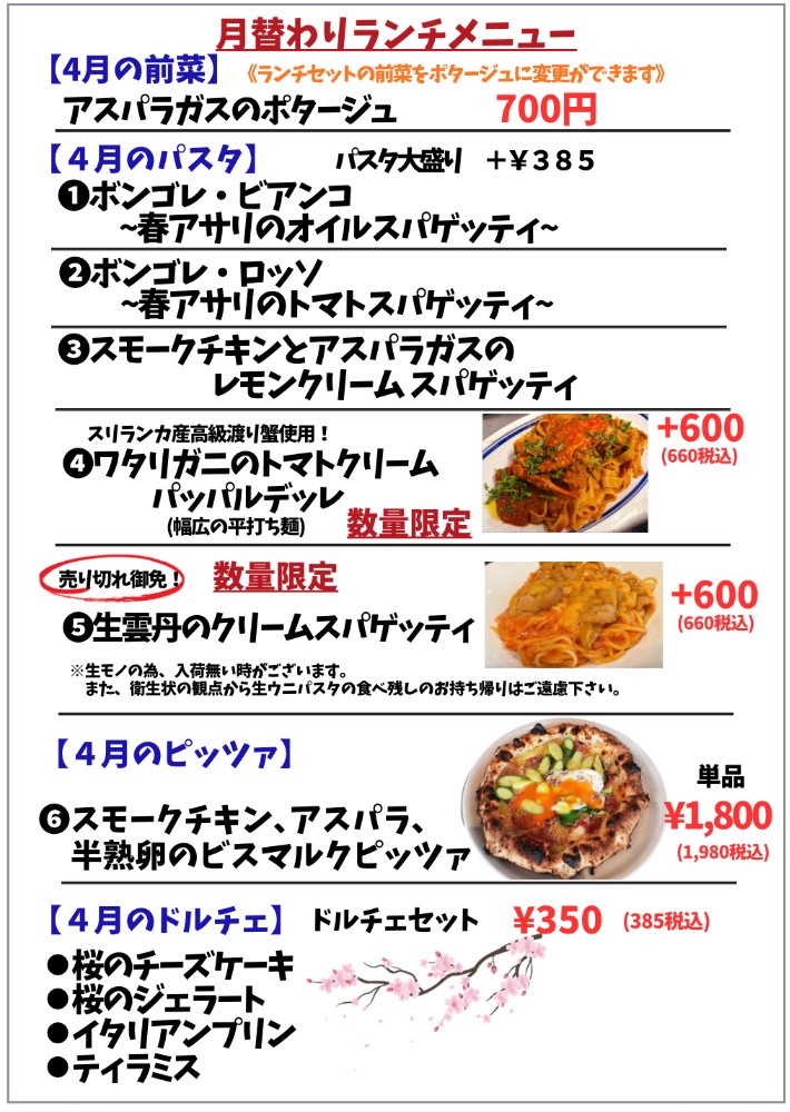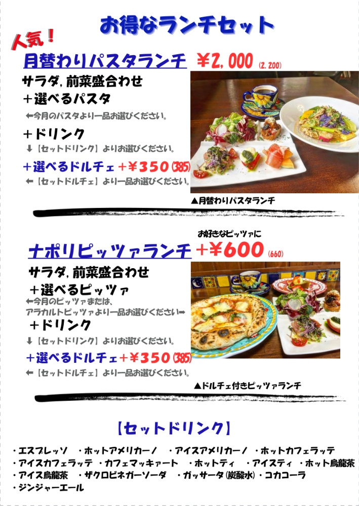 11:30〜14:30(L.O 13:45)気軽に楽しむ本格イタリアンランチ