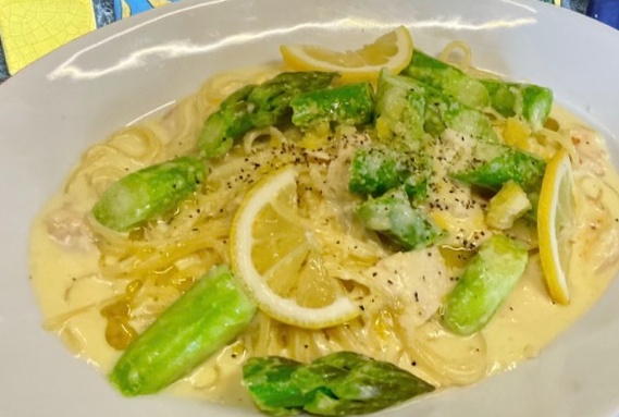 スモークチキンとアスパラガスのレモンクリームスパゲッティ